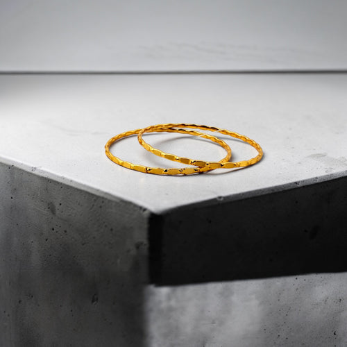 This graceful set features two elegantly crafted 18K gold plated bangles, each with a delicate wave-like design and subtle detailing. A beautiful expression of flowing style and refined taste. 🌊🔗